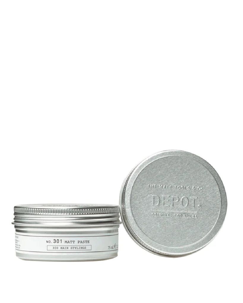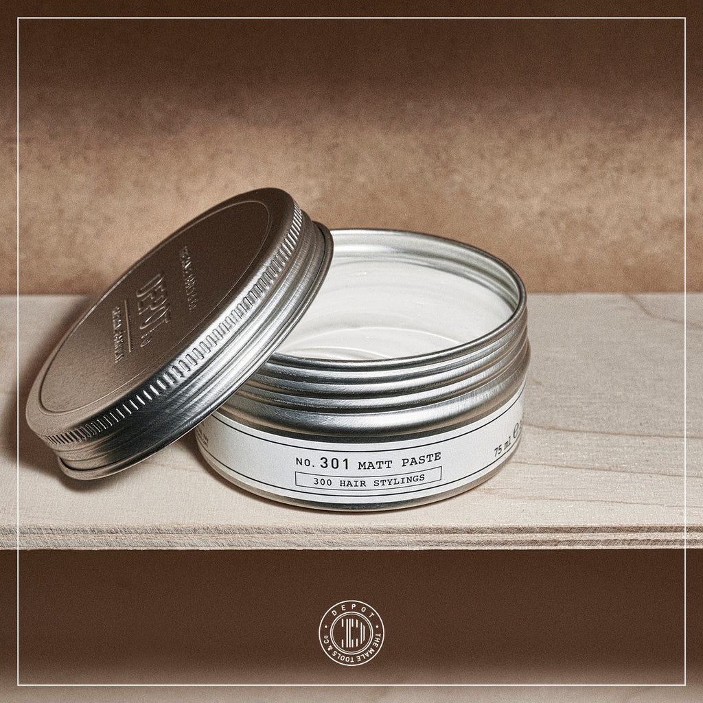 Mat pomada iz Depot - The Male Tools & Co. Svi proizvodi iz serije 300 su za oblikovanje kose, a br. 301 savršen je za frizure s malo volumena i svilenkasto mat završnim slojem. Umjereno držanje.
