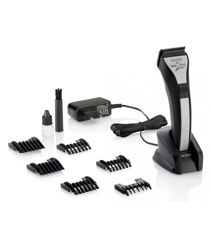 Aparat za šišanje MOSER - 1877 vrhunski je profesionalni aparat za šišanje, koja je nadogradnja već popularnog Chromstyle aparata za šišanje kose. Novi model mašinice za kosu MOSER 1877 ima poboljšanu reznu glavu s ugljikovim premazom, koja je 40 puta izdržljivija od klasične. Rezna glava izrađena je od visokokvalitetnog nehrđajućeg čelika i omogućuje iznimno precizno rezanje. Brzina rezne glave doseže čak 5.300 o / min, za razliku od starog modela s 4.800 o / min.