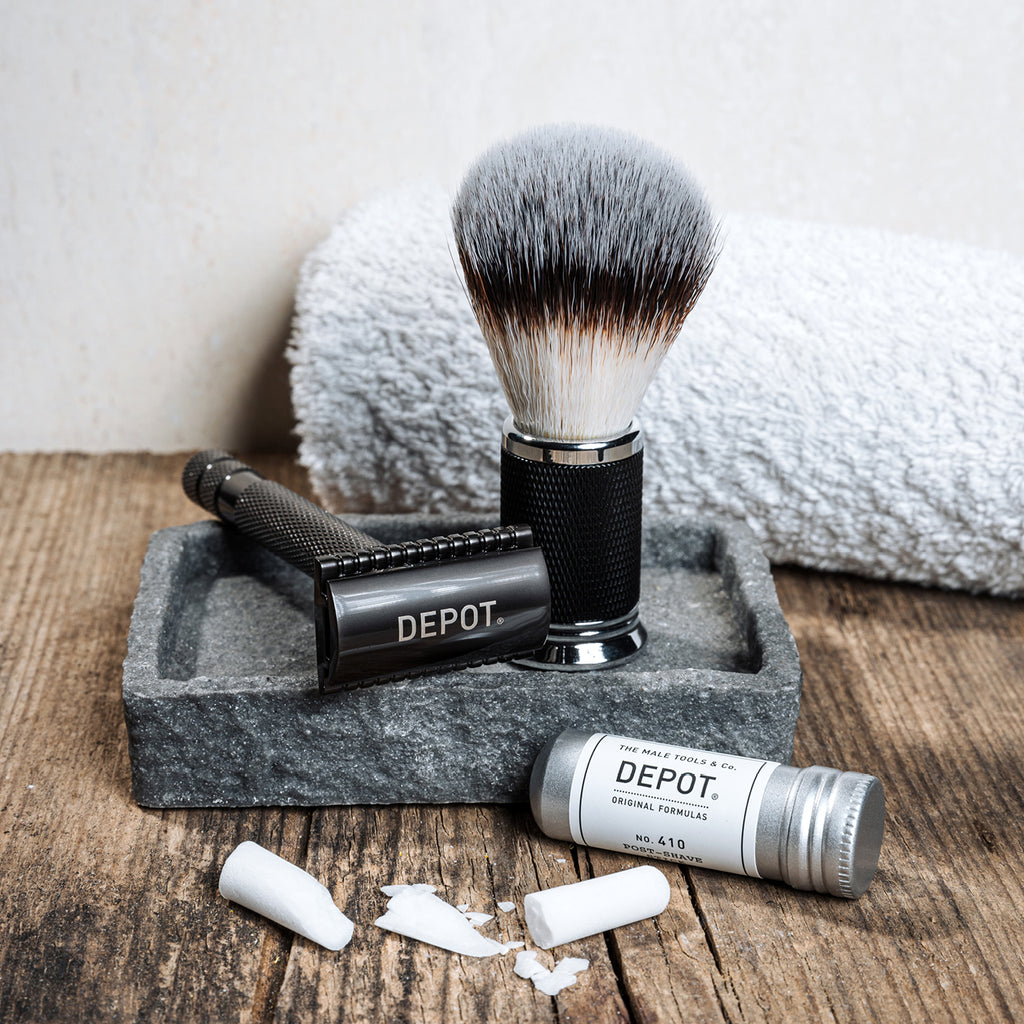 DEPOT štapić nakon brijanja br. 410 je specijalizirani proizvod za njegu namijenjen umirivanju i njezi kože nakon brijanja. Ovaj štapić od 5 g formuliran je s kalijevim stipsom i aluminijevim sulfatom, mineralima poznatim po adstringentnim i hemostatskim svojstvima, koji pomažu u smanjenju krvarenja od bilo kakvih ureza ili posjekotina nastalih tijekom brijanja. Njegova kompaktna veličina čini ga praktičnim dodatkom svakom priboru za brijanje, savršenim za popravke u pokretu ili za redovitu kućnu upotrebu. Za one koji traže profinjeno iskustvo nakon brijanja, stik br. 410 nudi praktično rješenje za uobičajene iritacije brijanja.