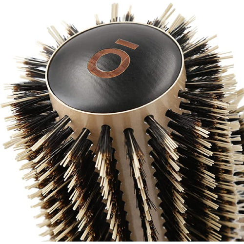 Ekskluzivna drvena okrugla četka promjera 38mm izrađena je od mješavine kvalitetnih najlonskih čekinja i veprove dlake koje zatvaraju katikulu i čine kosu glatkom i sjajnom