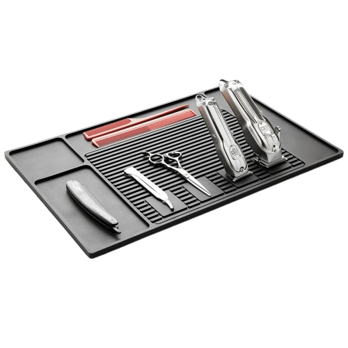 Silikonski magnetski podmetač dimenzija 48x32 cm neophodan je alat za brijače, dizajniran da škare za šišanje i druge metalne alate drži organiziranima i lako dostupnima. Magnetska traka ugrađena u podlogu sigurno drži alate na mjestu, sprječavajući njihovo klizanje ili pad s radne stanice. Izrađene od visokokvalitetnog silikona, ove prostirke su izdržljive, otporne na toplinu do 150°C i lako se čiste, osiguravajući higijensko i učinkovito radno okruženje. Dovoljno su prostrani za držanje više alata, što ih čini praktičnim dodatkom svakom brijačkom uredu.