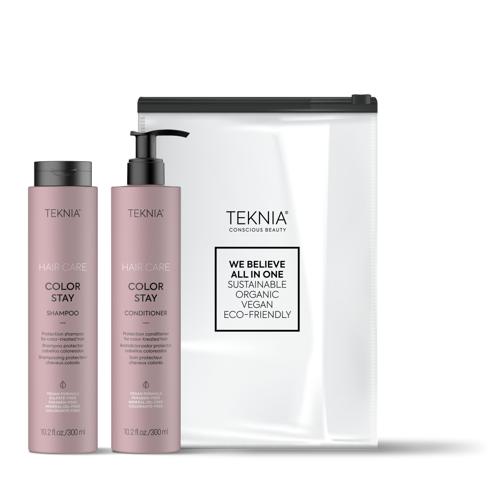 TEKNIA COLOR STAY Duo pakiranje sadrži: Color Stay šampon 300 ml + Color Stay regenerator 300 ml + ekološku toaletnu torbicu na poklon