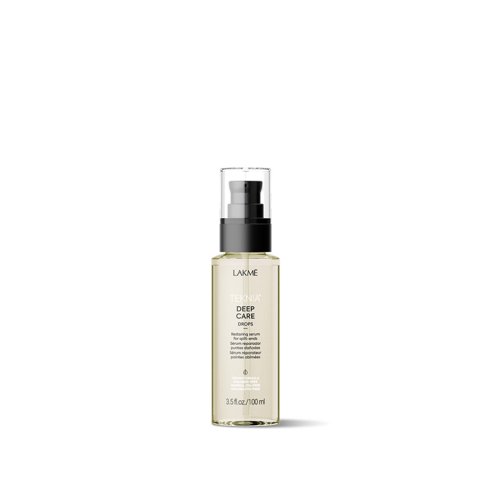 TEKNIA Deep Care Drops specijalizirani su proizvod za njegu kose namijenjen obnavljanju i zaglađivanju oštećenih vrhova kose, stvarajući zaštitnu barijeru koja kosu čini posebno mekom i s iznimnim sjajem. Prednosti seruma pripisuju se njegovoj veganskoj formuli koja ne sadrži parabene, mineralna ulja i bojila. Sadrži organsko ulje iz Etiopije, bogato Omega-3 i 6 masnim kiselinama, pruža dubinsku, nemasnu prehranu i povećava elastičnost i kondicionirajući učinak na kosu. S nježnim cvjetnim mirisom pojačanim eteričnim uljem geranija, nudi obnavljajući i antioksidativni učinak, uz svježu aromu divlje lavande koja nadopunjuje note ruže i geranija. Za upotrebu, nanesite 1-3 kapi na mokru ili suhu kosu, fokusirajući se od sredine duljine do vrhova, a zatim pročešljajte; nije potrebno ispiranje. Ovaj proizvod se posebno preporučuje za kosu koja je oštećena kemijskim tretmanima ili stresom iz okoliša, jer djeluje na obnovu i jačanje unutarnje strukture kose, povećavajući njenu otpornost na lomljenje.